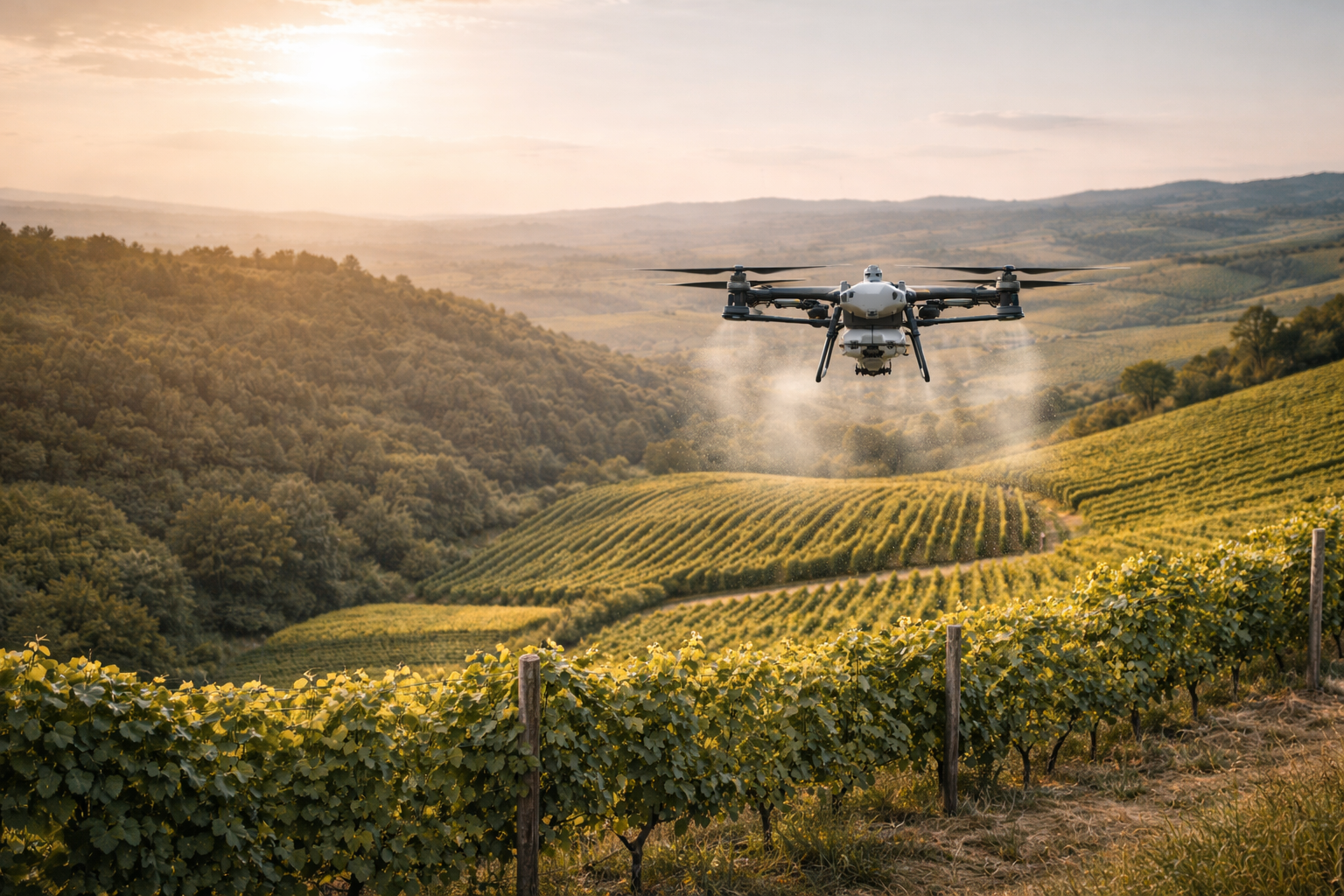 Präzise Weingartenanalysen, erlesene Weinqualität – Drohnenring im Weinbau.